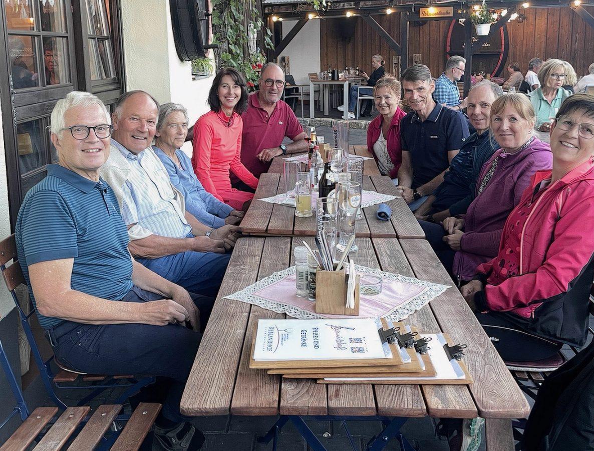 Pünktlich um 17:00 Uhr setzte sich die Gruppe in Bewegung in Richtung Westen. Über Waggershausen, Schnetzenhausen und durch die Obstanlagen bei Fischbach und Immenstaad führte der Weg nach Kippenhausen. Nach einer ausgiebigen Stärkung in der Besenwirtschaft Reblandhof wurde es Zeit für die Heimfahrt, denn die Sonne verabschiedete sich ebenfalls so langsam.