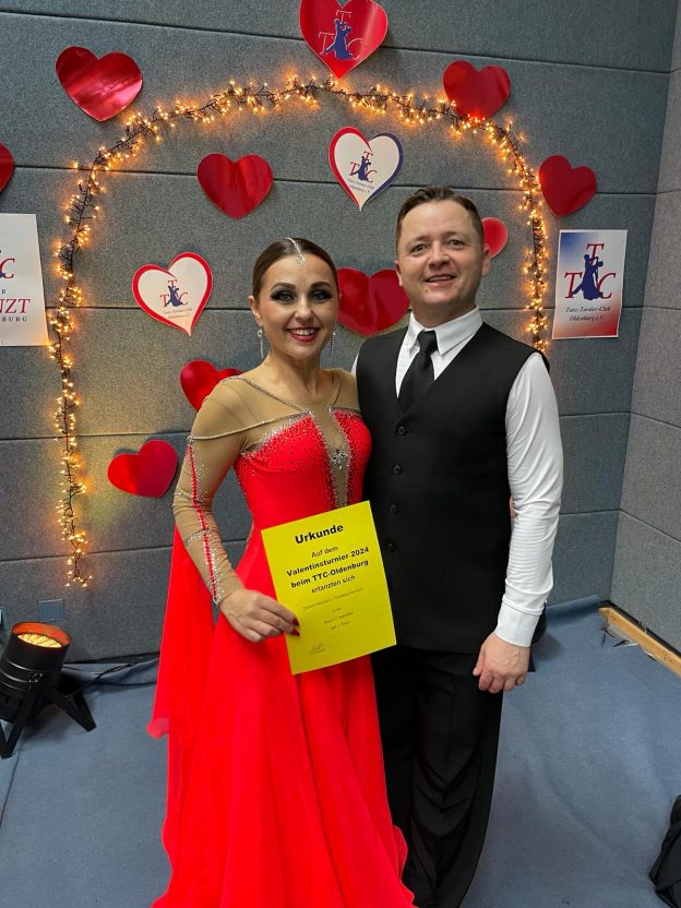 Svetlana und Dietrich Hermann gewinnen das Valentinsturnier in der Masters II C-Klasse Standard am 10. Februar 2024 in Oldenburg.